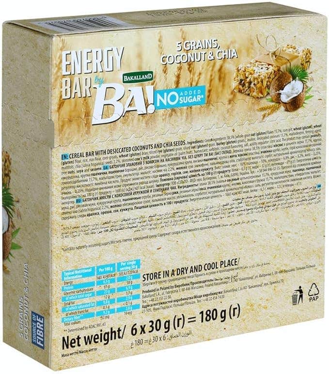 باكلاند بار للطاقة بجوز الهند و بذور الشيا 6*30 جم