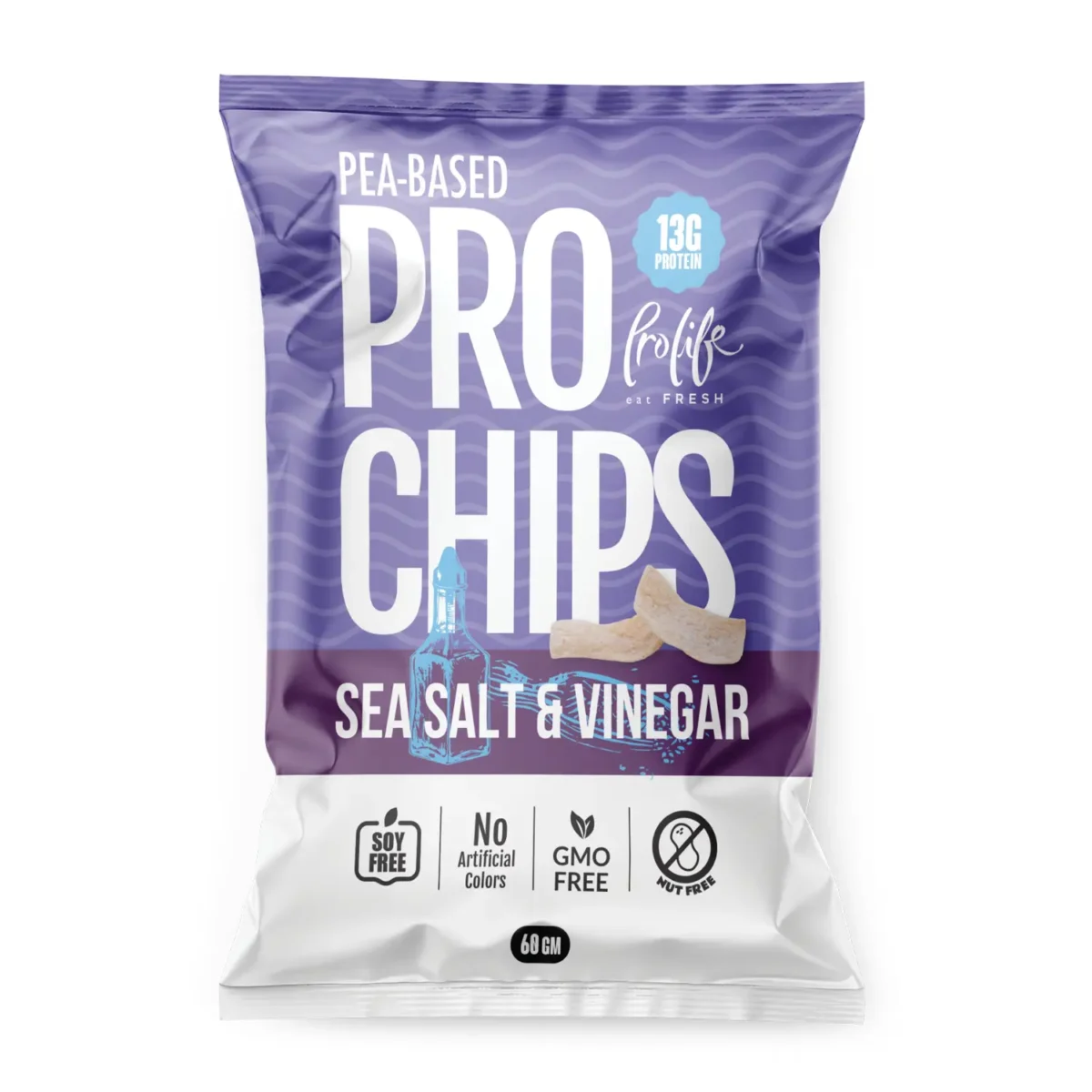 استمتع بوجبة خفيفة لذيذة وصحية مع برولايف برو شيبس بطعم الملح البحري والخل، المصنوعة من مكونات عالية الجودة. تم تحضيرها باستخدام بروتين البازلاء لتمدك بالطاقة وتغنيك عن الوجبات السريعة التقليدية.