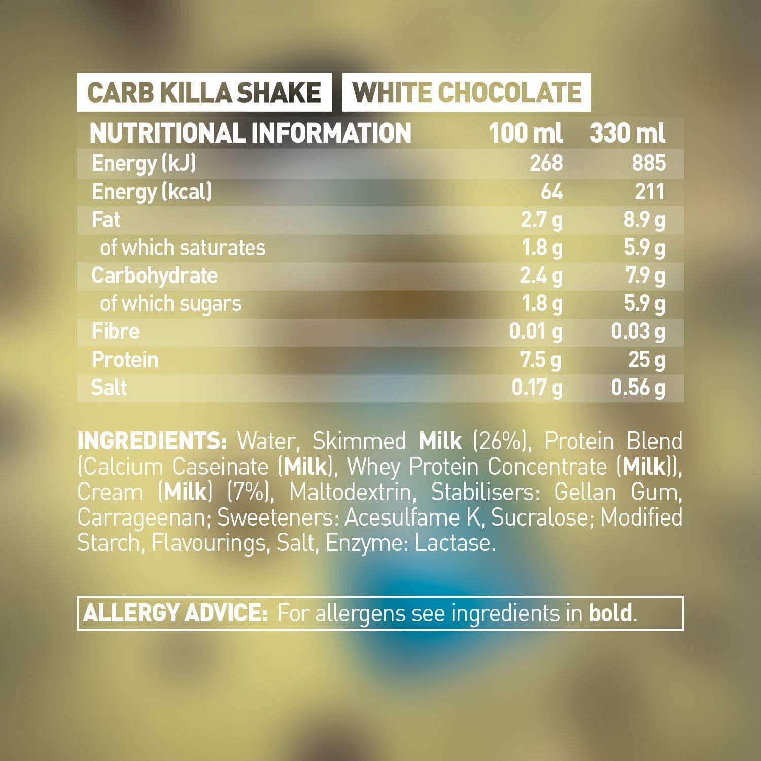 مكونات جريناد كارب كيلا بروتين شيك بحلوى الشوكولاتة البيضاء: