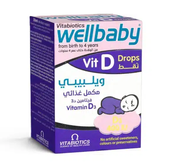 ويلبيبي تم تصنيعه بعناية من قبل خبراء التغذية لدعم طفلك بالعناصر الغذائية الأساسية اللازمة للنمو الطبيعي وتطور العظام لدى الأطفال. مكون من فيتامين د في قاعدة زيت الزيتون الطبيعي، ويلبيبي منتج مبتكر وفريد مخصص للأطفال يحتوي على فيتامين د3 (كوليكالسيفيرول) 0.5 مل يحتوي على (400 وحدة دولية) وهو ما يمثل 100% من الكمية الموصى بتناولها يوميًا. مناسب للأطفال من الولادة حتى 4 سنوات.