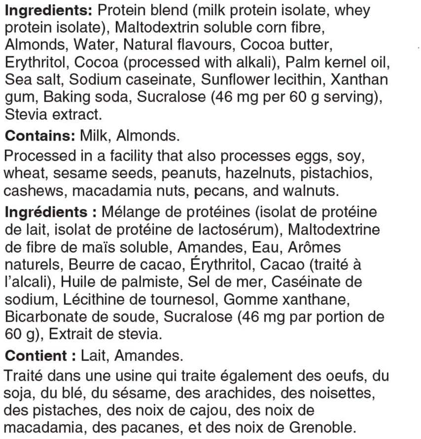 ✔️ ألياف الذرة القابلة للذوبان، لوز، ماء، زبدة الكاكاو، نكهات طبيعية