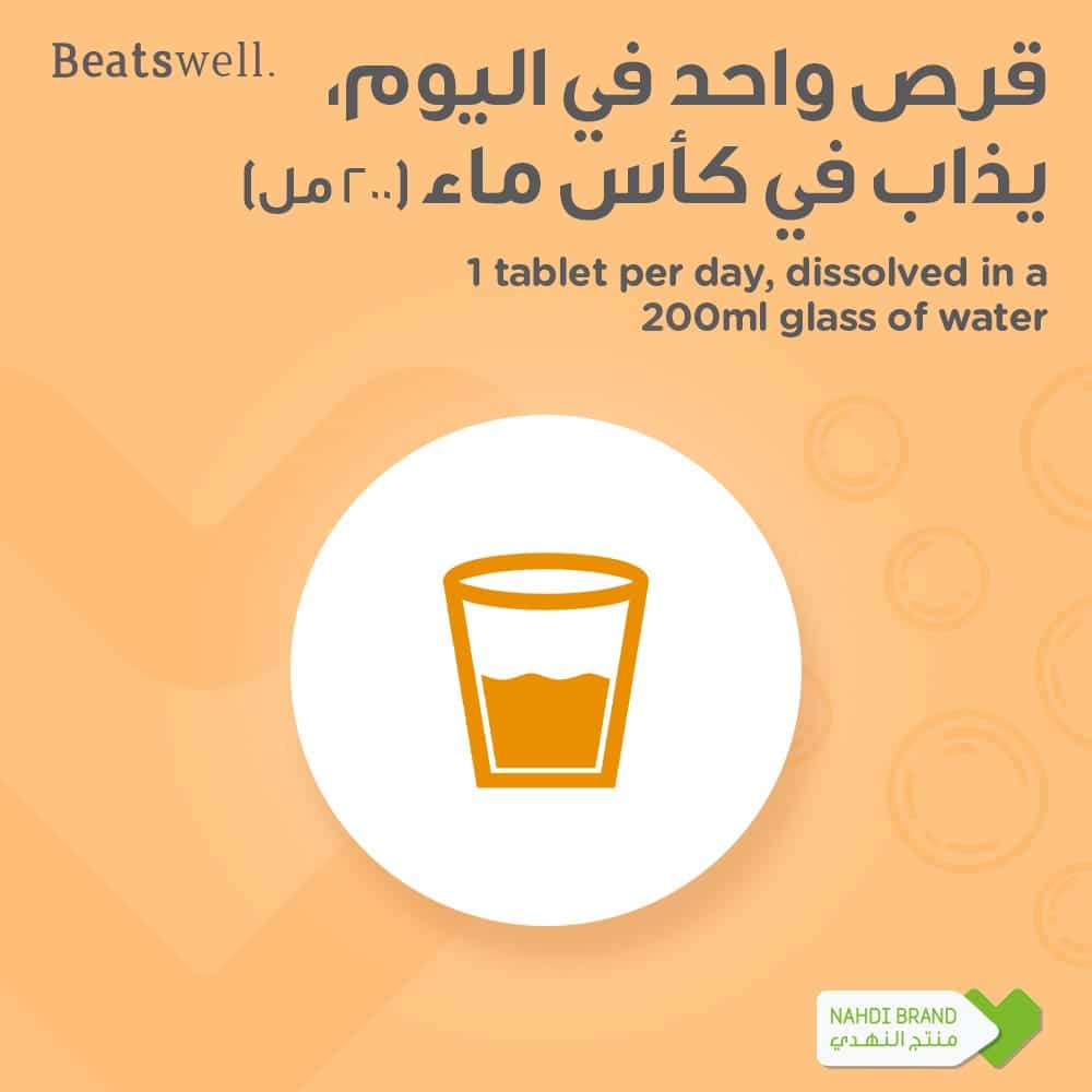 ✔️ قرص واحد يوميًا، قم بإذابته في كوب من الماء (200 مل).
