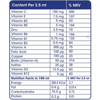 • Children (3-8 years): 2.5 ml once daily after a meal.