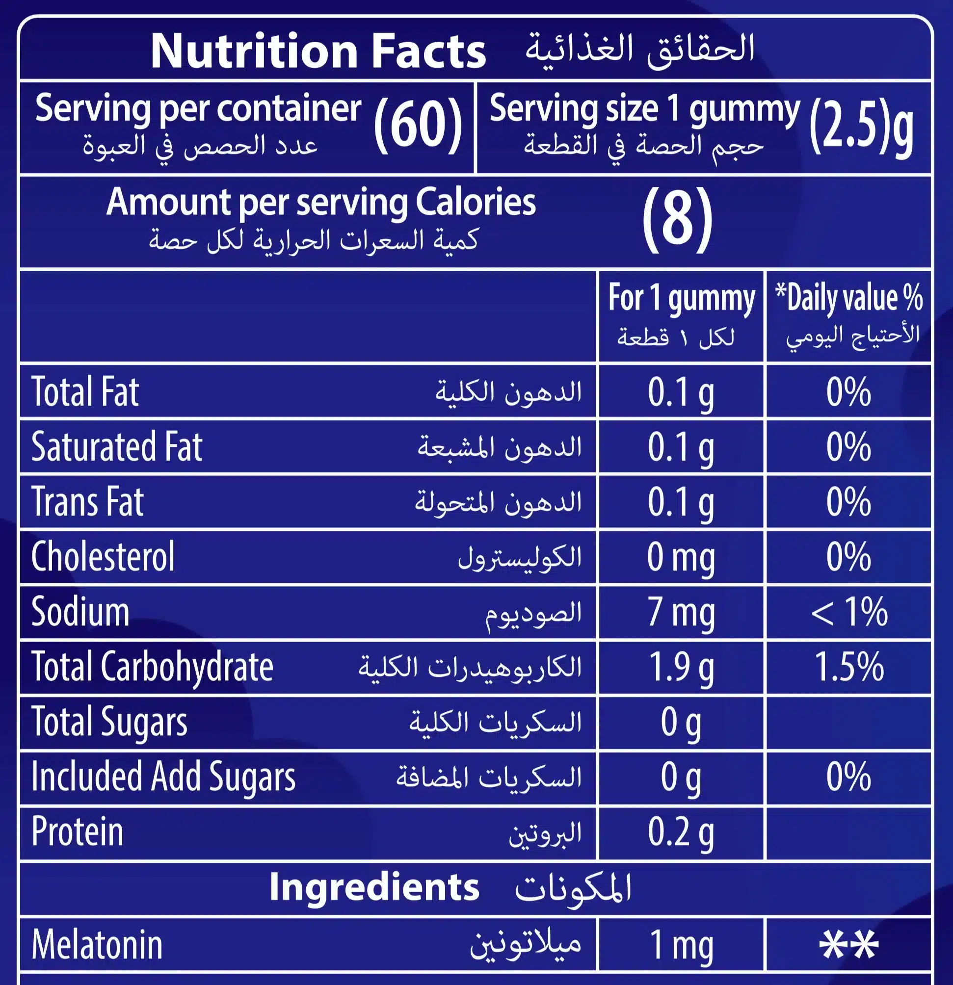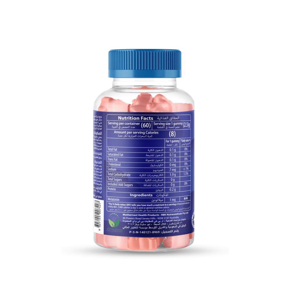 Mothernest Melatonin contains 60 gummies rich in melatonin.